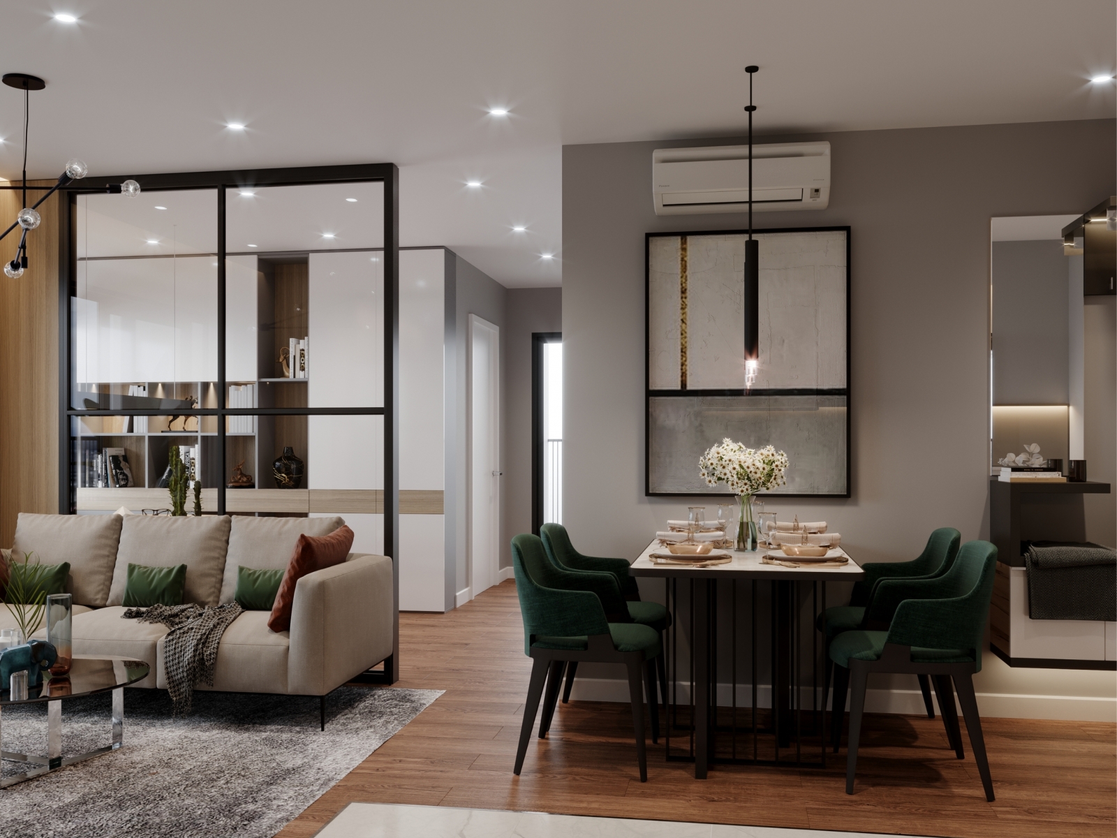 Nghệ thuật bố trí: Mỗi món đồ nội thất đều có vị trí hợp lý, vừa đảm bảo công năng, vừa tạo nên sự cân đối về thẩm mỹ.