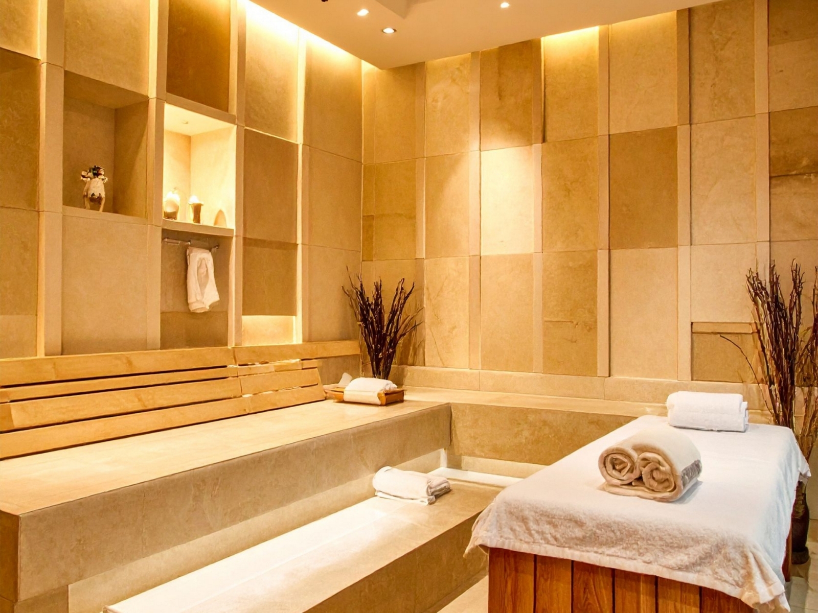 Ánh sáng dịu nhẹ kết hợp với gam màu trung tính hoặc pastel thường được ưu tiên trong spa vì tạo cảm giác thư giãn. Tuy nhiên, tùy theo phong cách, có thể sử dụng ánh sáng vàng ấm hoặc xanh nhẹ để mang lại cảm giác tươi mới và sang trọng.