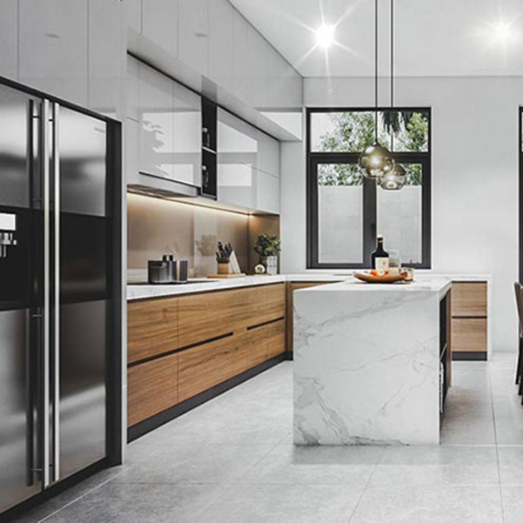 Gỗ tự nhiên, gỗ công nghiệp MDF lõi xanh chống ẩm, đá granite hoặc đá nhân tạo là những lựa chọn phổ biến. Biên Long Group sẽ tư vấn vật liệu phù hợp nhất với ngân sách và phong cách thiết kế của bạn.