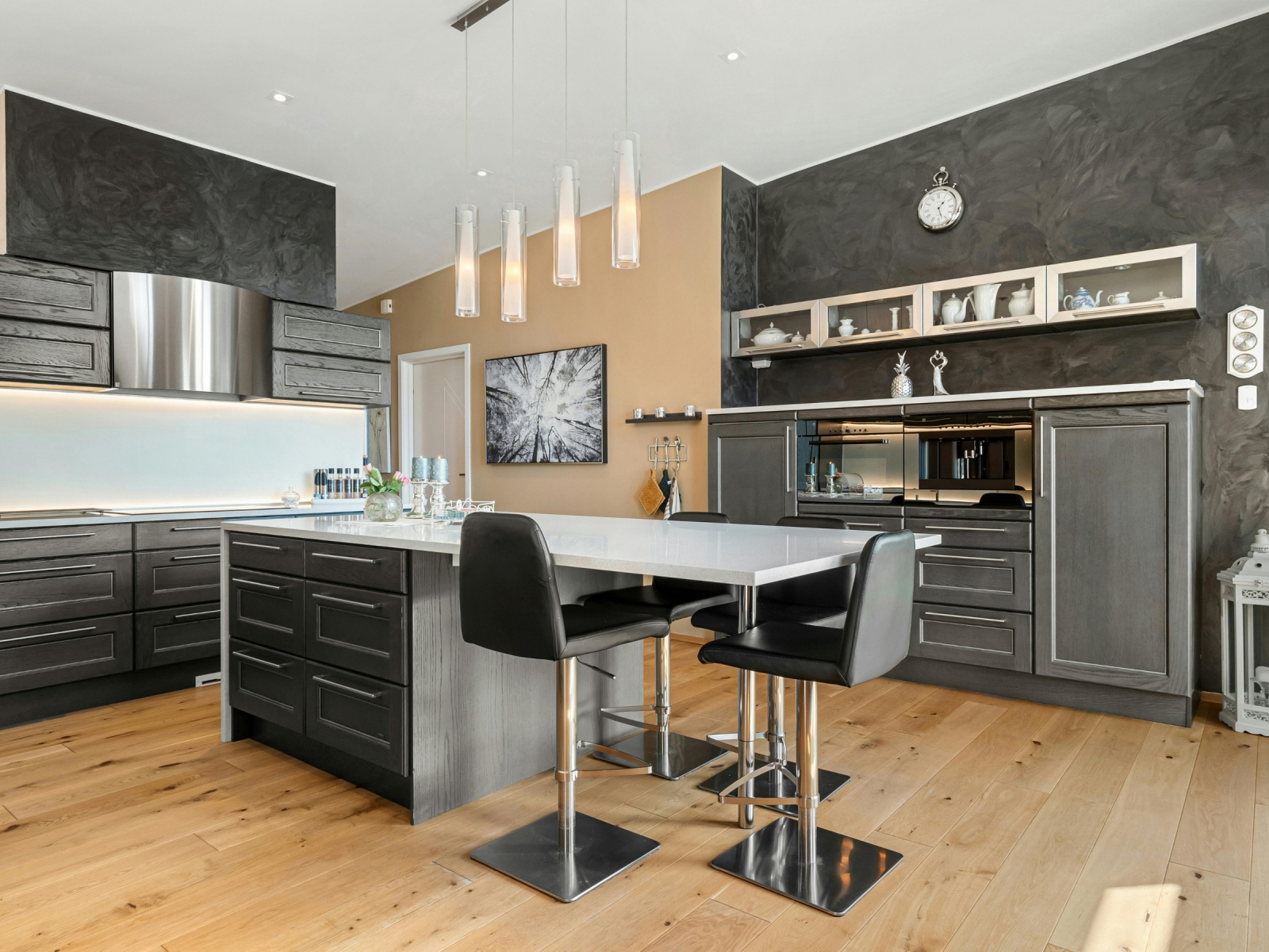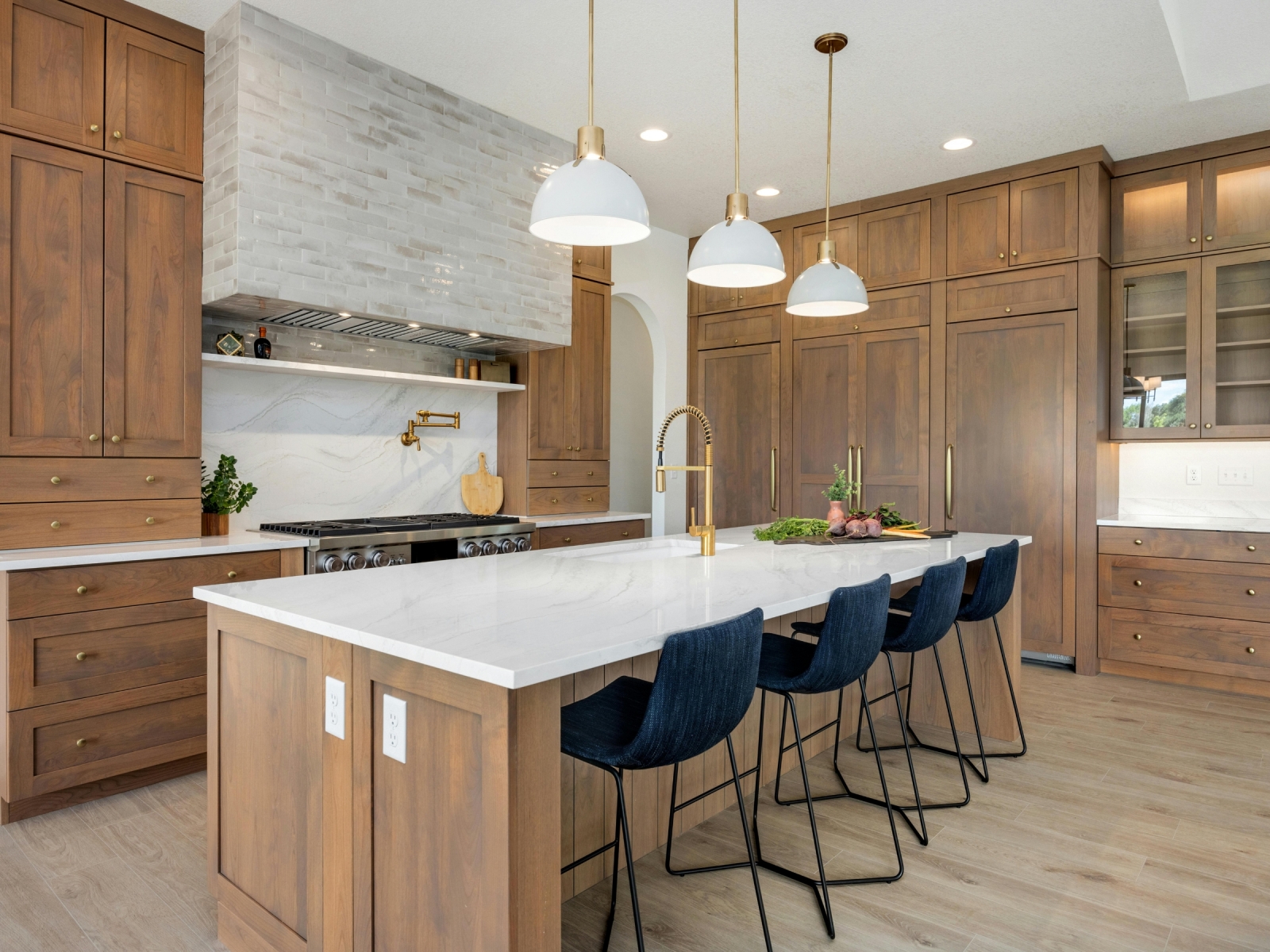 Phong cách sang trọng (Luxury): Kết hợp gỗ công nghiệp màu trầm với các chi tiết kim loại mạ vàng, mang đến không gian cao cấp cho biệt thự hoặc khách sạn.